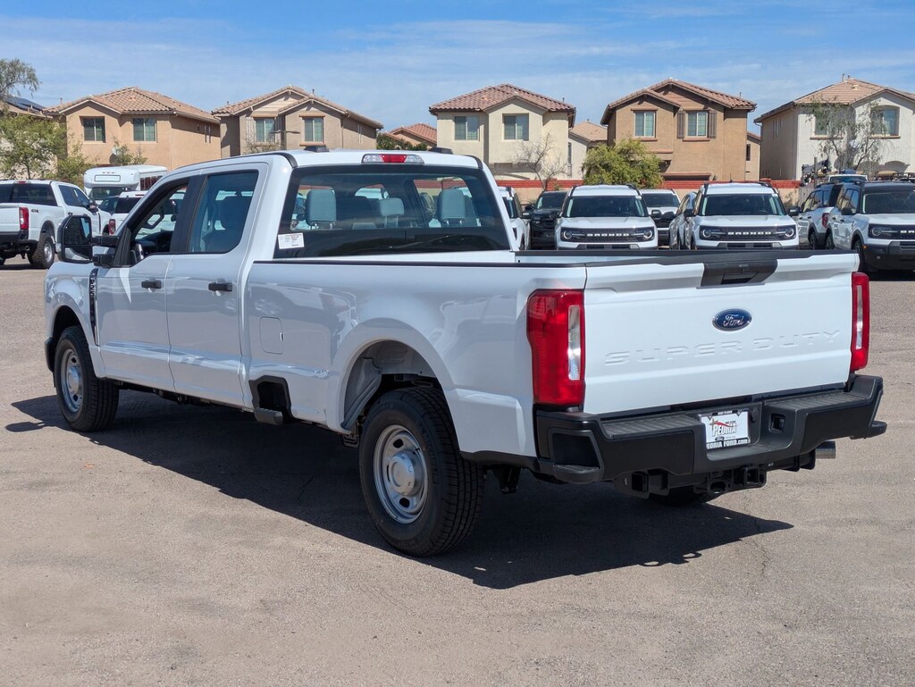 Step into the future of heavy-duty driving with the 2026 Ford Super Duty F-250 SRW XL. Designed for those who demand power and precision, this truck is equipped with a robust 8-cylinder engine and a seamless 10-speed automatic transmission, delivering unmatched performance on any terrain. Its Crew Cab configuration offers ample space and comfort, making it perfect for both work and leisure. The Oxford White exterior exudes a commanding presence, while the integrated tow hooks and tow hitch ensure you’re ready for any challenge. Safety is paramount, with features like stability control, traction control, and a comprehensive airbag system providing peace of mind on every journey. The truck's smart device integration and WiFi hotspot keep you connected, while the intuitive steering wheel audio controls and Bluetooth connection make every drive enjoyable. With its rear-wheel drive and flex-fuel capability, the F-250 SRW offers both efficiency and power. Whether you're hauling heavy loads or hitting the open road, this truck is engineered to exceed expectations, offering a driving experience that is as reliable as it is exhilarating. Discover the power of the Ford Super Duty and redefine what it means to drive with confidence.