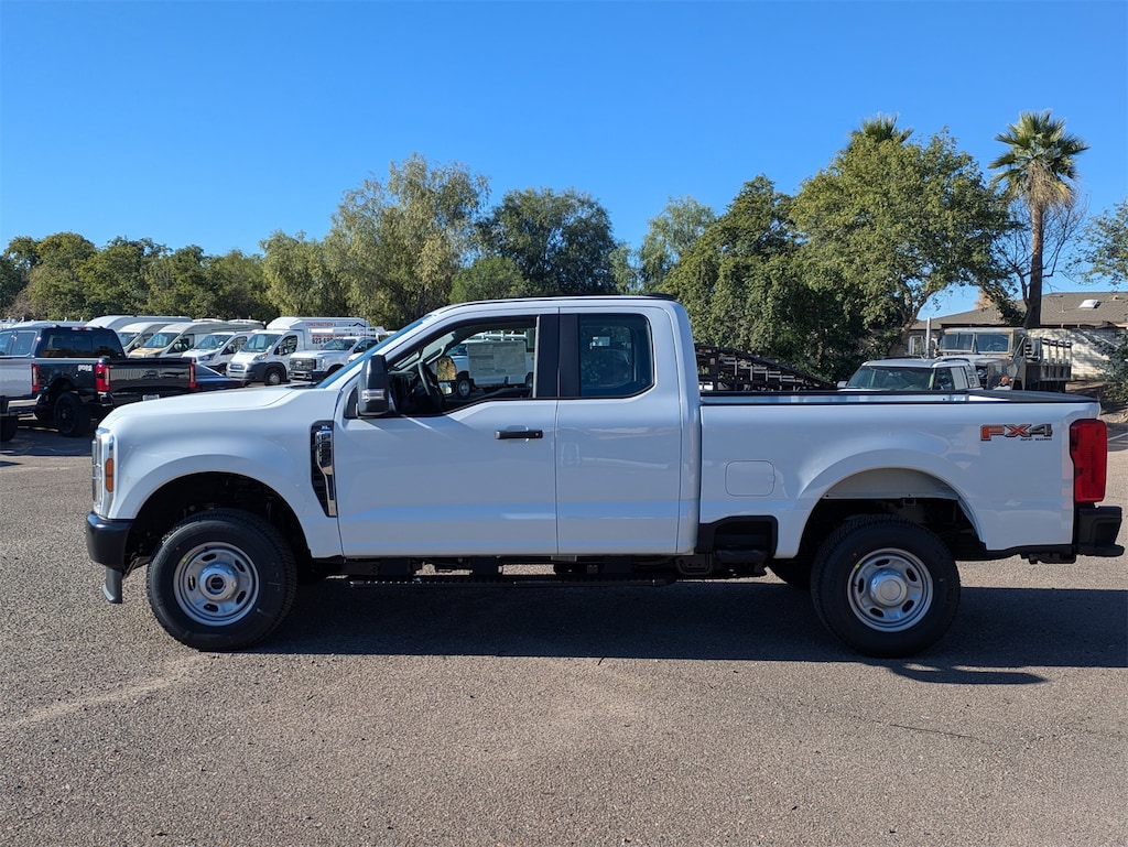 The 2026 Ford Super Duty F-250 SRW XL is engineered for those who demand more from their truck. With a robust 6.8L V8 engine, this powerhouse is ready to tackle the toughest jobs without breaking a sweat. Its 4x4 drivetrain ensures you have the confidence to conquer any terrain, whether you're navigating rugged backroads or cruising down the highway. The extended cab and long bed configuration provide ample space for both passengers and cargo, making it an ideal choice for work and play. Safety is paramount with features like Brake Assist, Stability Control, and a comprehensive airbag system, ensuring peace of mind on every journey. The integrated tow hooks and tow hitch make hauling heavy loads a breeze, while the 10-speed automatic transmission with dual shift mode offers seamless gear changes for optimal performance. The Oxford White exterior exudes a timeless appeal, while the interior boasts smart device integration and a WiFi hotspot, keeping you connected wherever the road takes you. For those who value power, reliability, and versatility, the Ford Super Duty F-250 SRW XL is the ultimate driving companion.