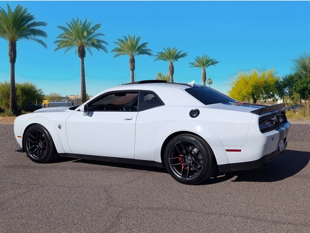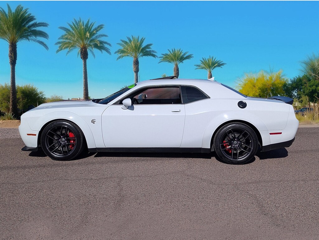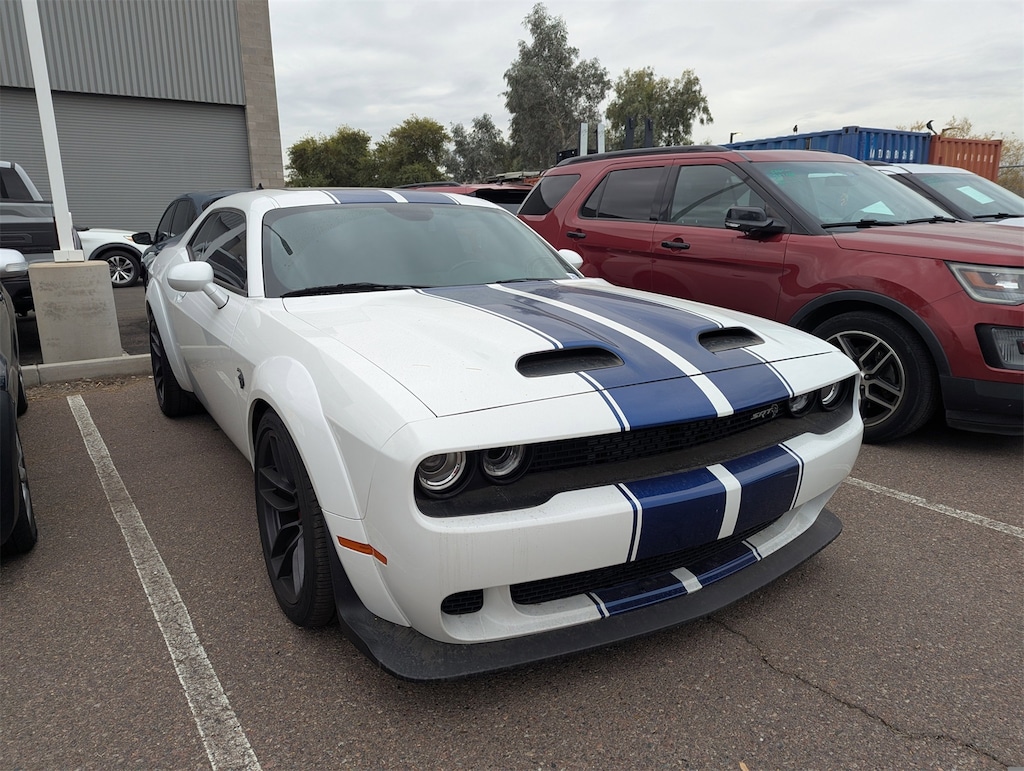 Experience the thrill of raw power with the 2019 Dodge Challenger SRT Hellcat Widebody. This used beast, dressed in a striking White Knuckle Clearcoat, is engineered for those who crave adrenaline and dominance on the open road. At its heart lies a ferocious 6.2L Supercharged HEMI V8 engine, delivering unparalleled horsepower and torque that will leave the competition in the dust. The 8-speed automatic transmission ensures seamless gear shifts, while the rear-wheel-drive configuration offers an authentic driving experience that purists will appreciate.
