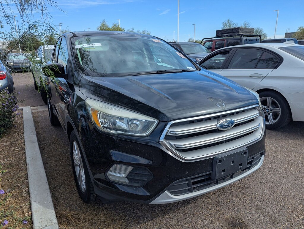 Step into the world of the 2017 Ford Escape SE, a compact SUV designed for those who crave performance and style in their daily commute. This used gem, dressed in striking Shadow Black, boasts a spirited Ecoboost 2.0L I4 engine, offering a turbocharged thrill with every drive. The 6-speed automatic transmission ensures a smooth ride, while the front-wheel drive enhances maneuverability, making it perfect for city streets and open highways alike.