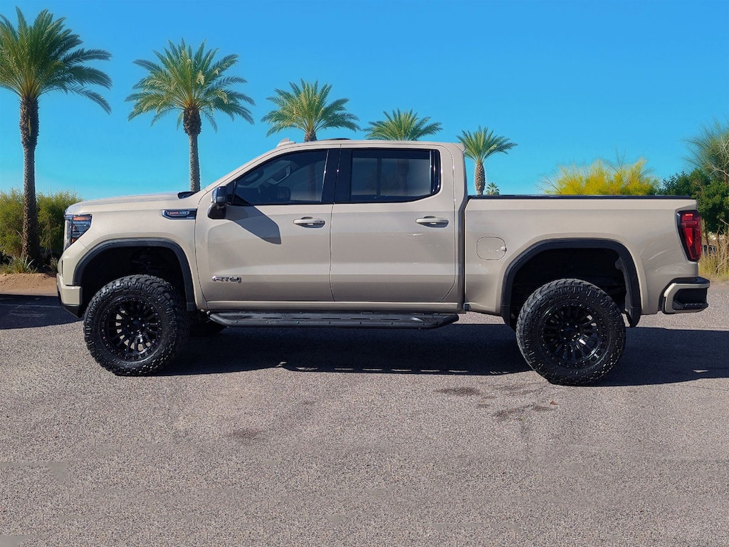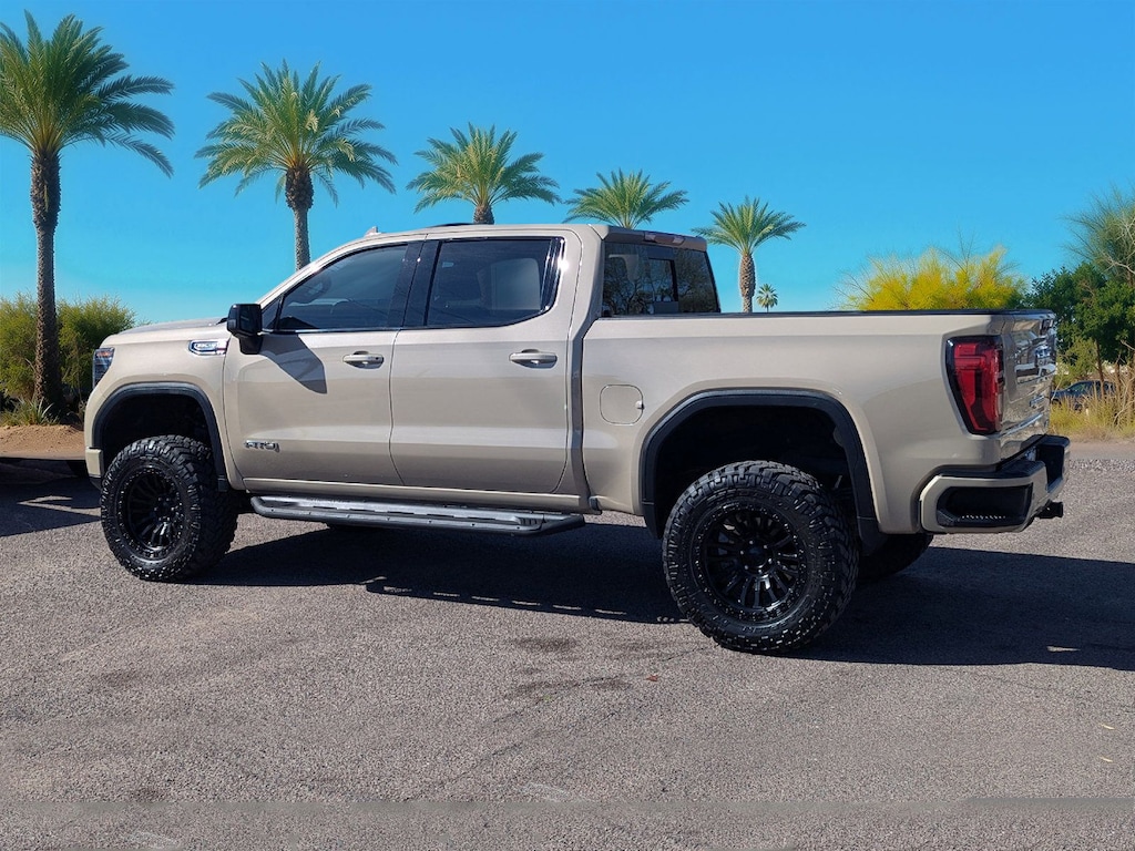 For those who demand more from their truck, the 2023 GMC Sierra 1500 AT4 is your ultimate driving partner. This used powerhouse features a robust 8-cylinder engine, paired with a 10-speed automatic transmission, ensuring a smooth yet commanding drive on any terrain. The 4x4 drivetrain and locking/limited slip differential provide exceptional off-road capability, making it perfect for those who love to explore the unbeaten path. Safety is paramount, with advanced features like blind spot monitoring, lane keeping assist, and front collision mitigation, offering peace of mind on every journey. Inside, the crew cab pickup offers luxury and comfort with leather seats, heated and cooled front seats, and a heated steering wheel. The integrated tailgate step adds convenience, while the premium sound system and navigation keep you entertained and on track. With its striking Desert Sand Metallic exterior, this truck is as stylish as it is functional. Whether you're towing, commuting, or adventuring, the GMC Sierra 1500 AT4 stands ready to meet your needs with unmatched performance and sophistication.